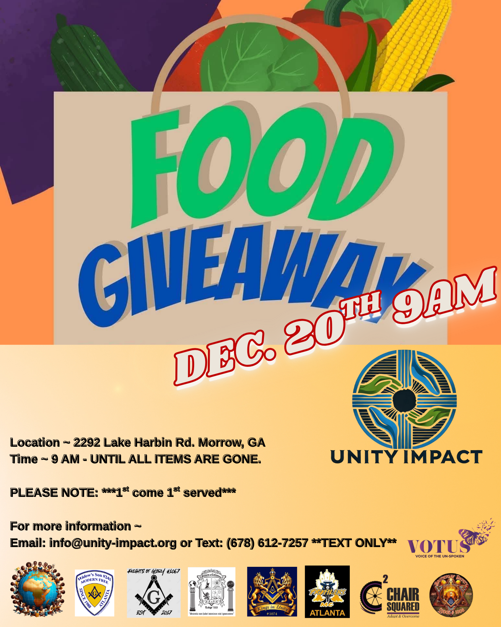 Celebrate the season while helping families in need by donating non-perishable food items. Supported By Unity Impact.